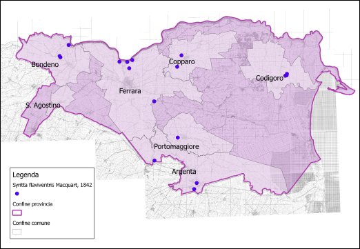 Corazza C. (Ed.), 2012. I DITTERI SIRFIDI NELLA BIOINDICAZIONE DELLA BIODIVERSITÀ.I Sirfidi, il database Syrph the Net e una chiave dicotomica ai generi dei Sirfidi Italiani. Quaderni della Stazione di Ecologia, Museo Civico di Storia Naturale di Ferrara, 20, xxx pp.